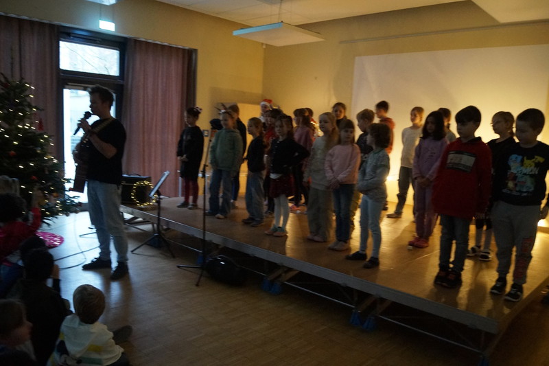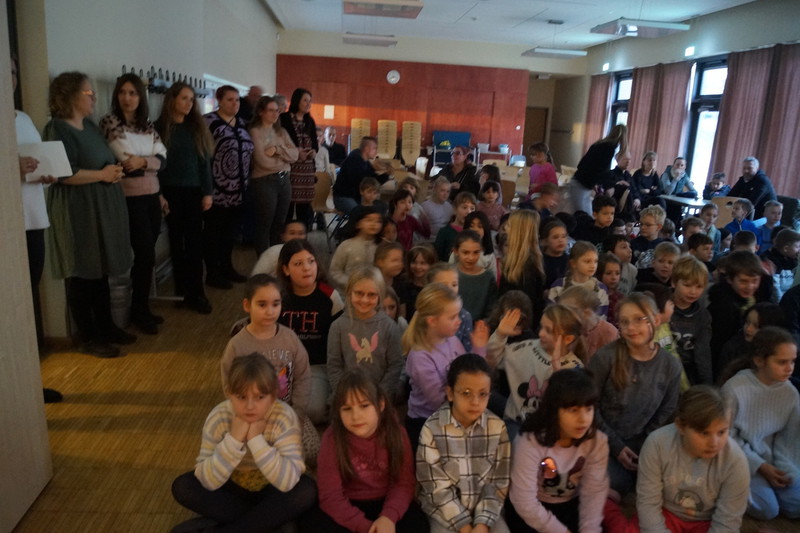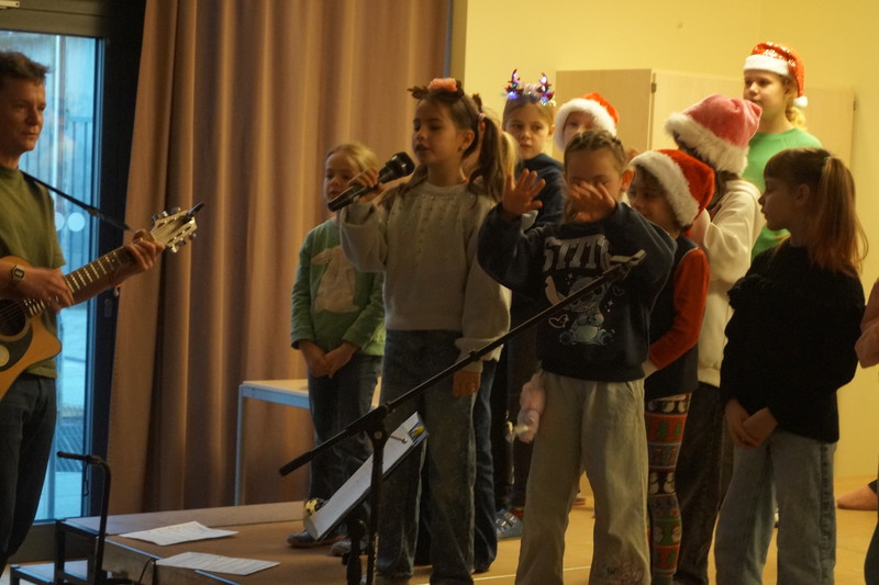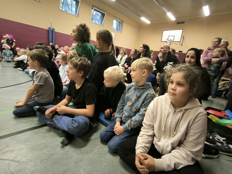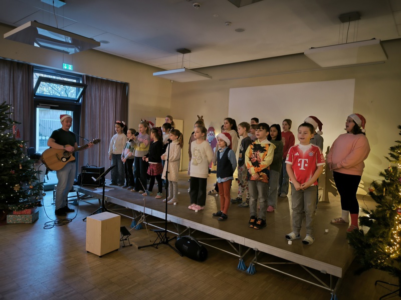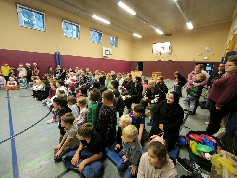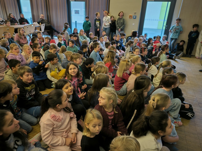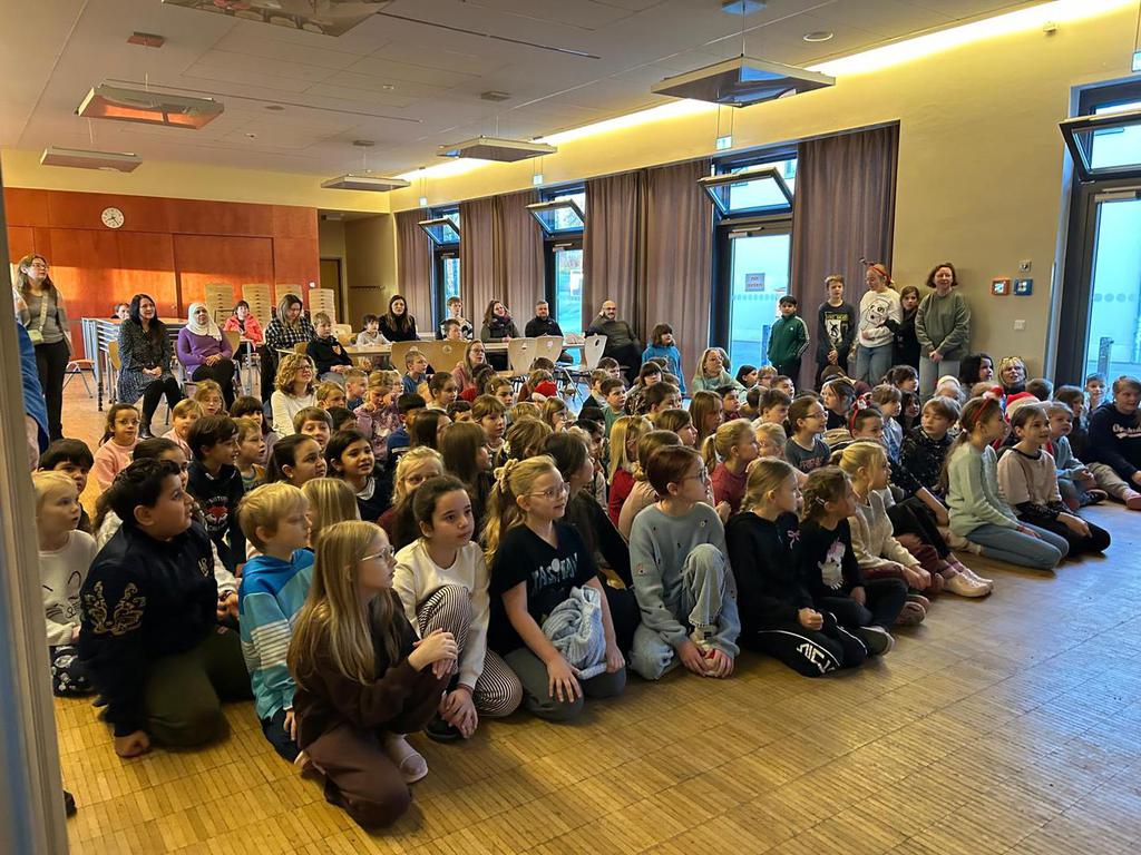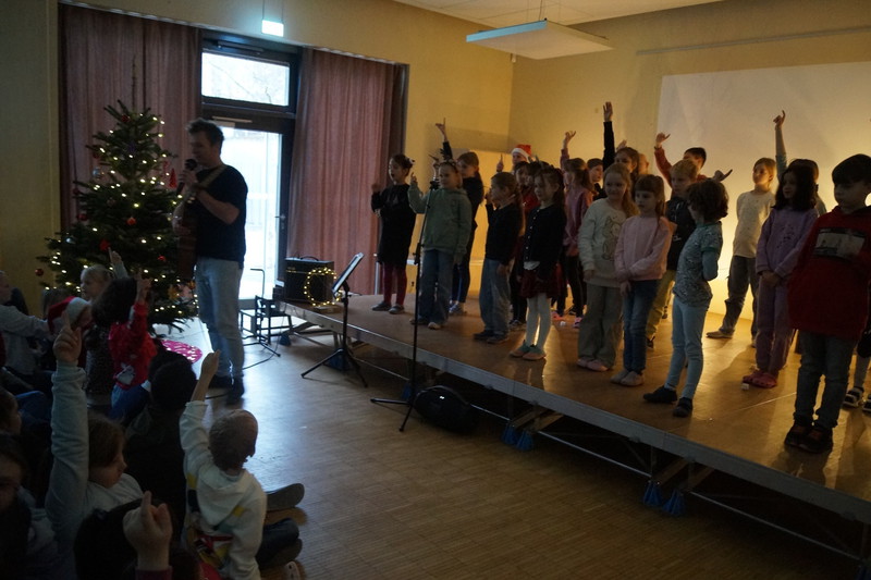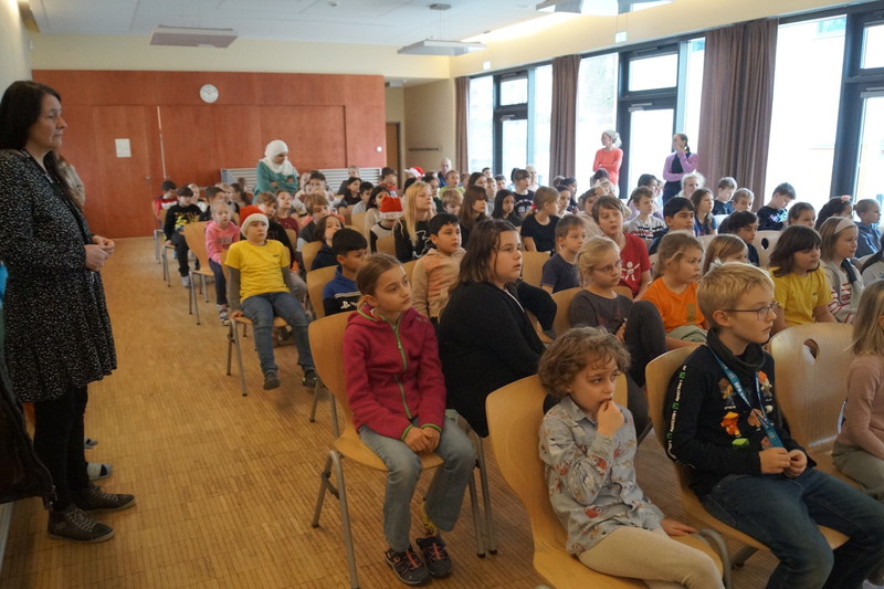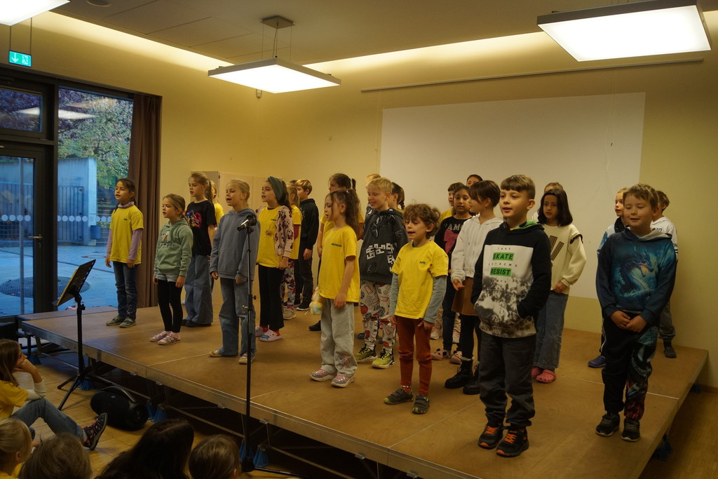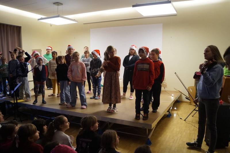 2.10.2025: Gemeinsames Singen vor den Herbstferien....und ganz mutige KInder spielten Gitarre, trugen ein Gedicht vor und zeigten einen Zaubertrick