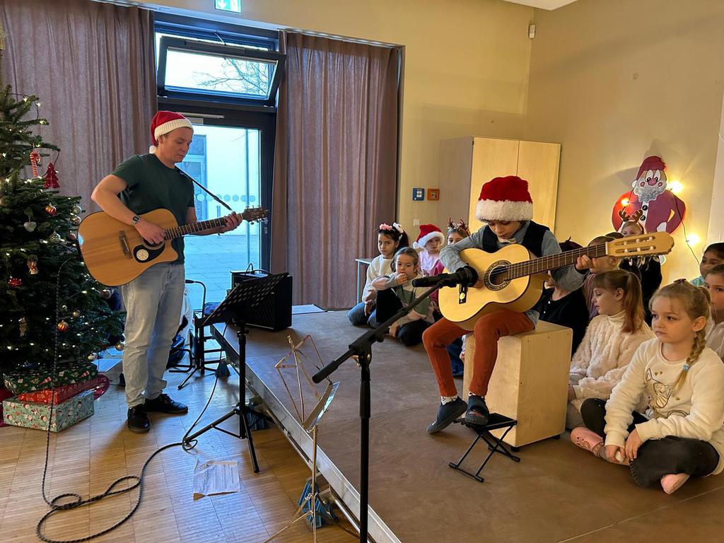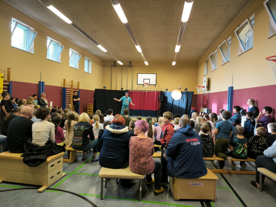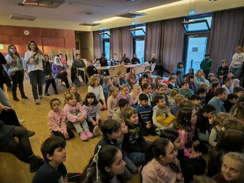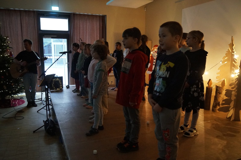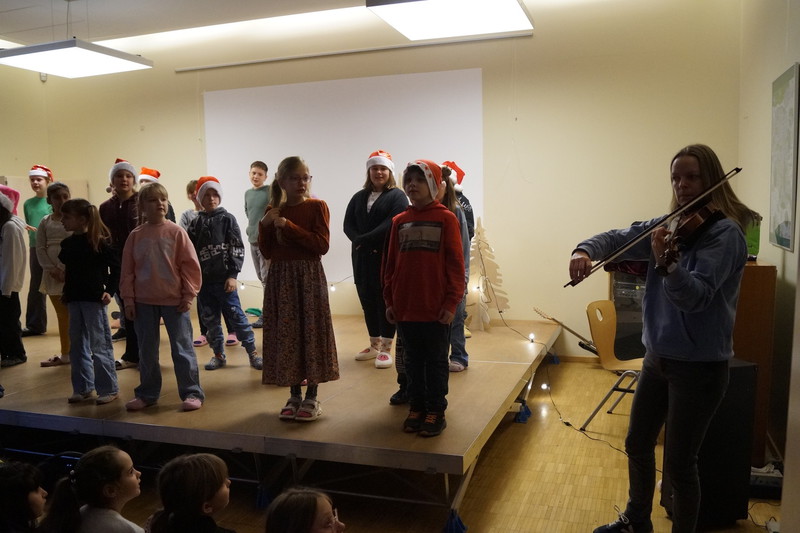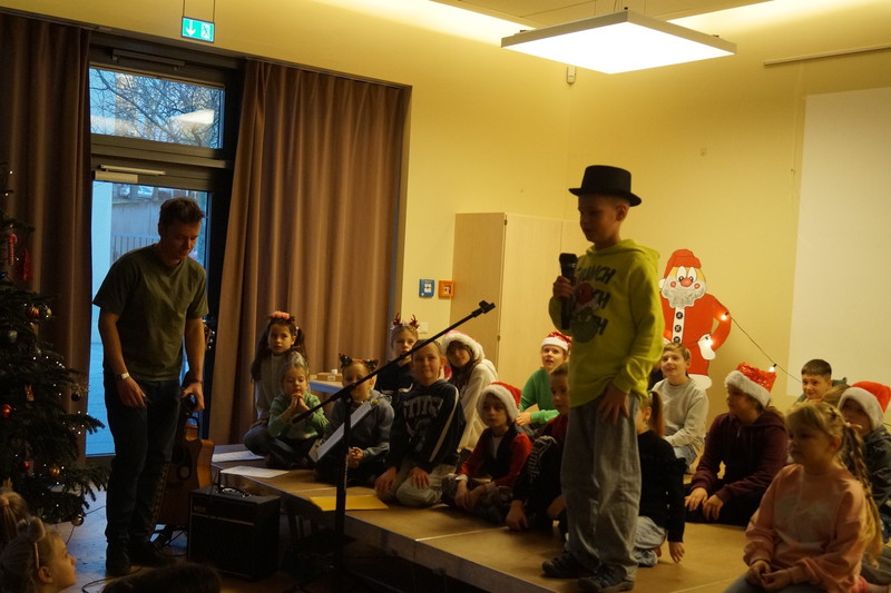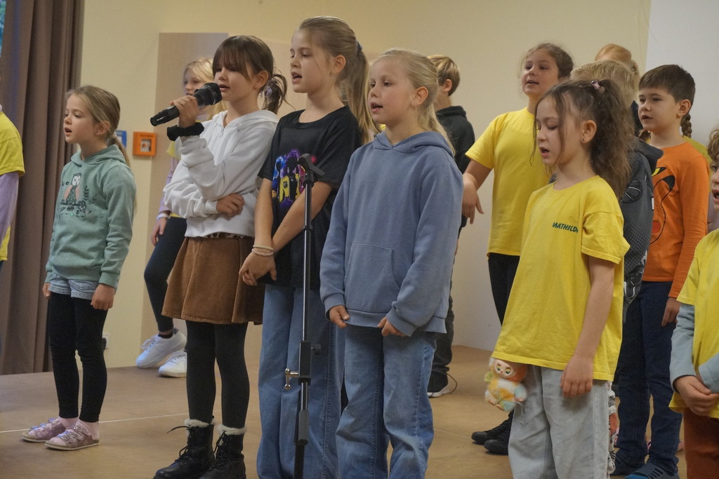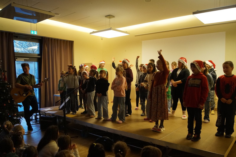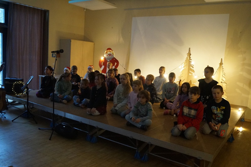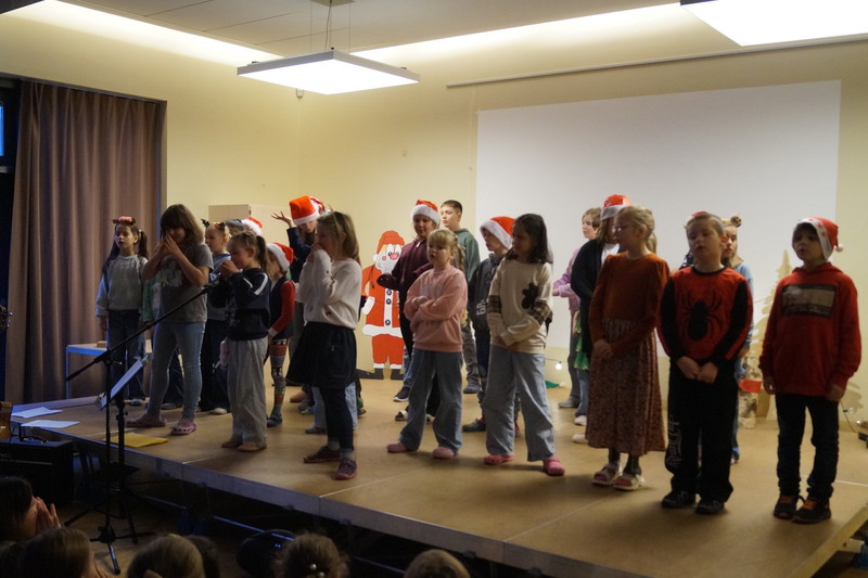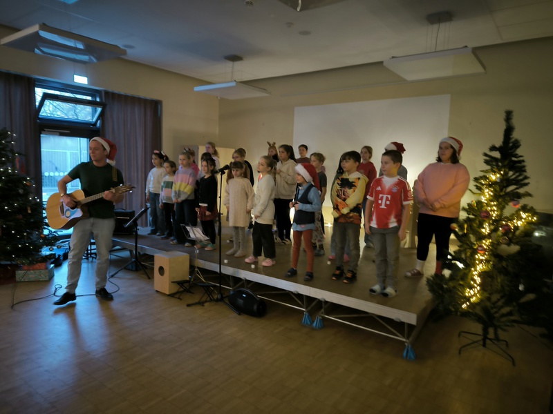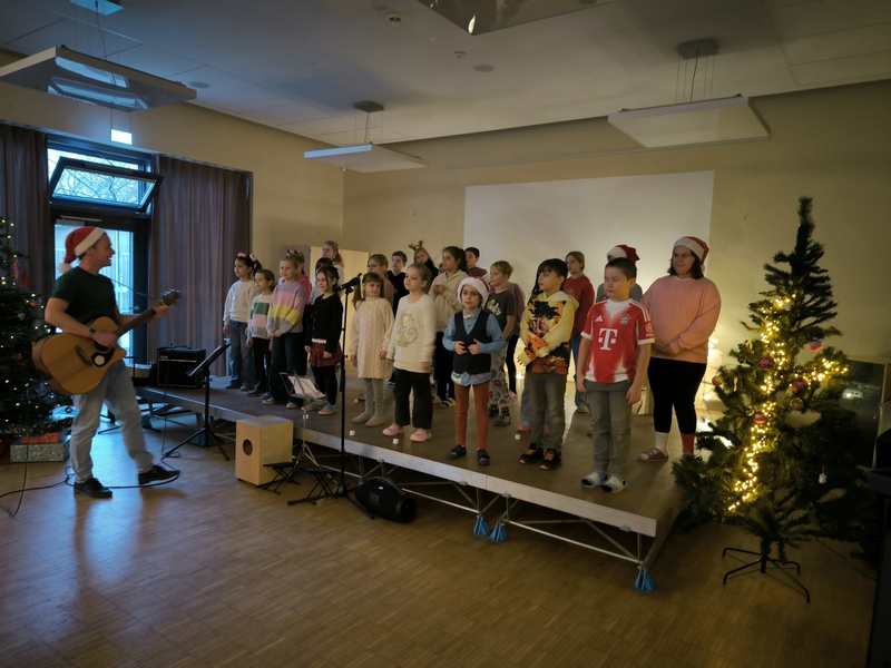 2.10.2025: Gemeinsames Singen vor den Herbstferien....und ganz mutige KInder spielten Gitarre, trugen ein Gedicht vor und zeigten einen Zaubertrick