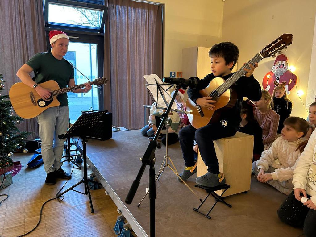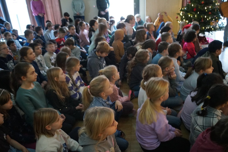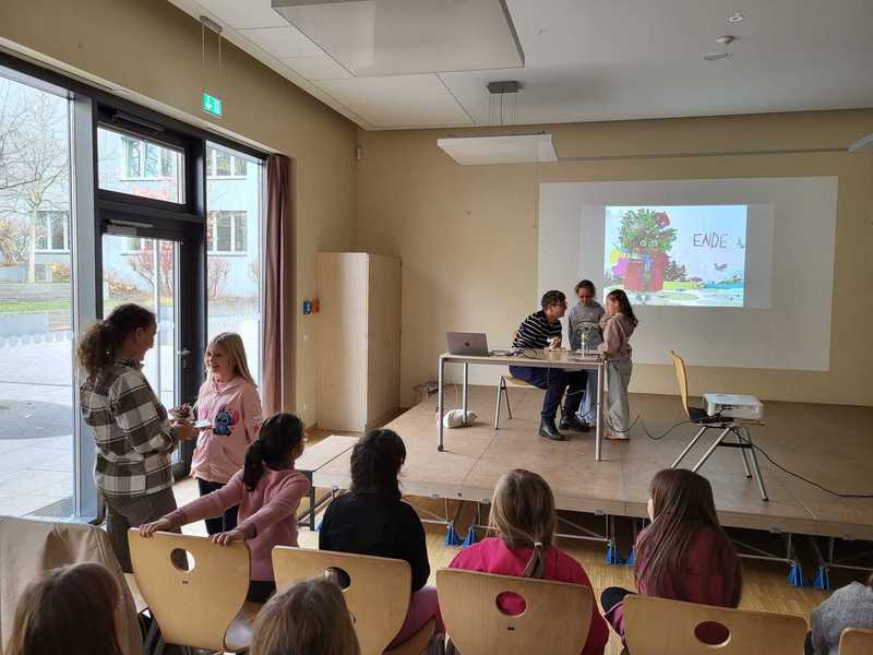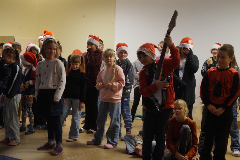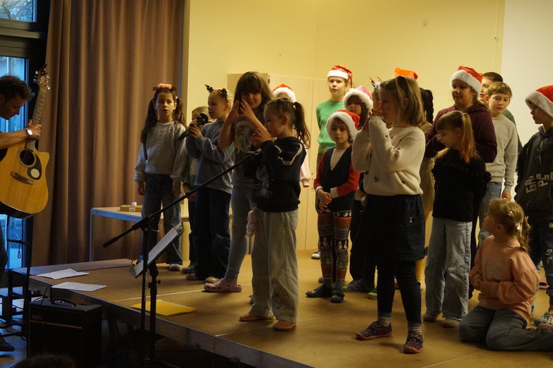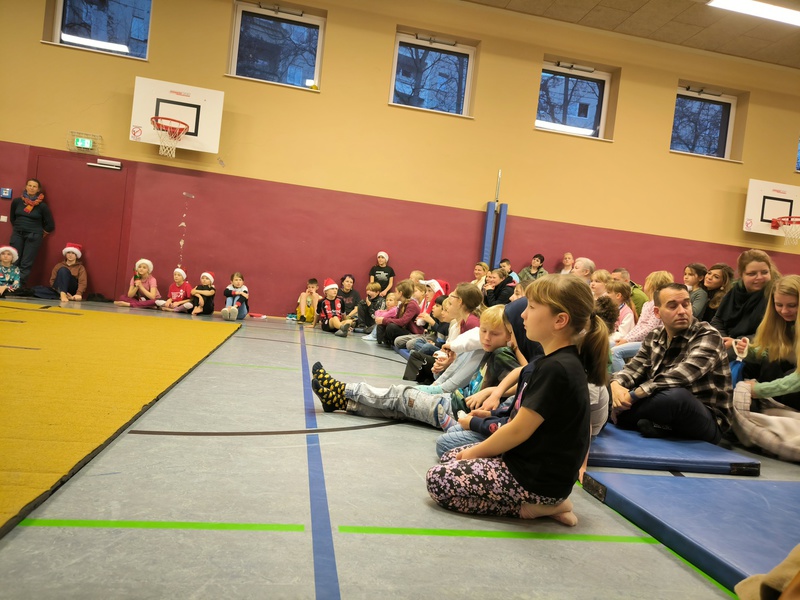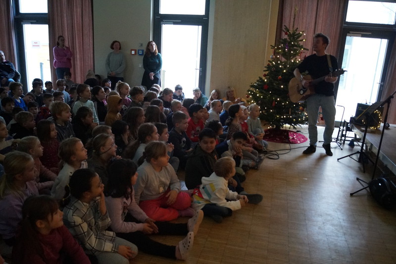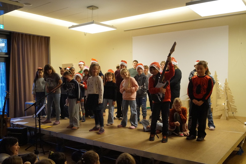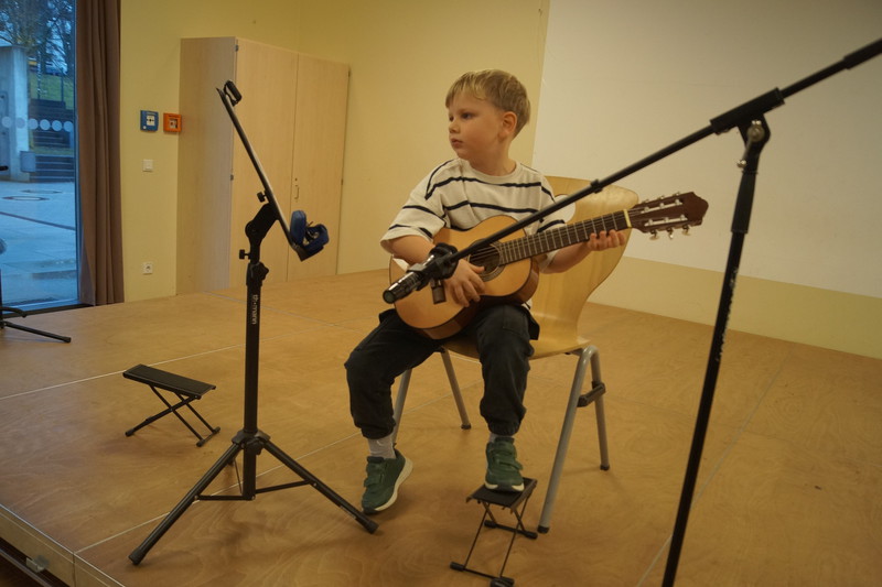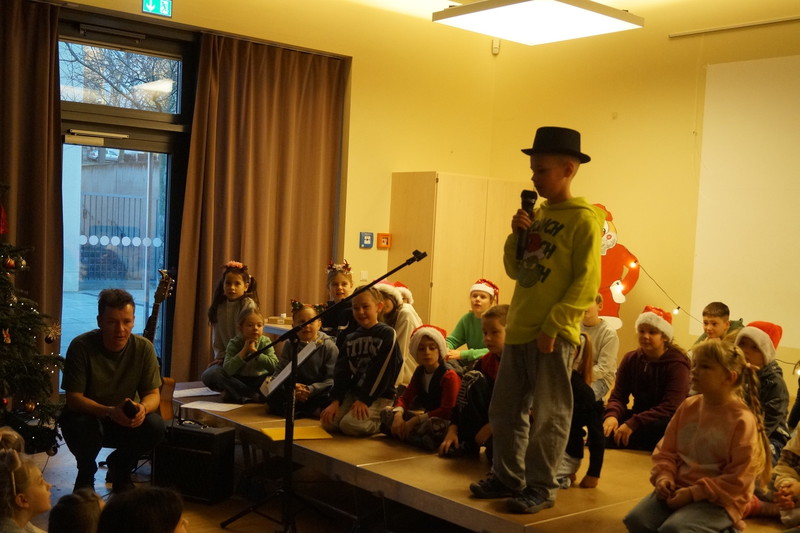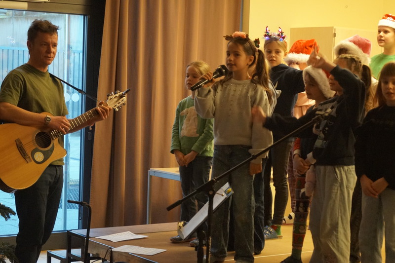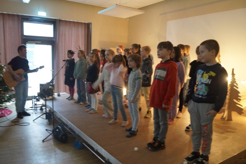 2.10.2025: Gemeinsames Singen vor den Herbstferien....und ganz mutige KInder spielten Gitarre, trugen ein Gedicht vor und zeigten einen Zaubertrick