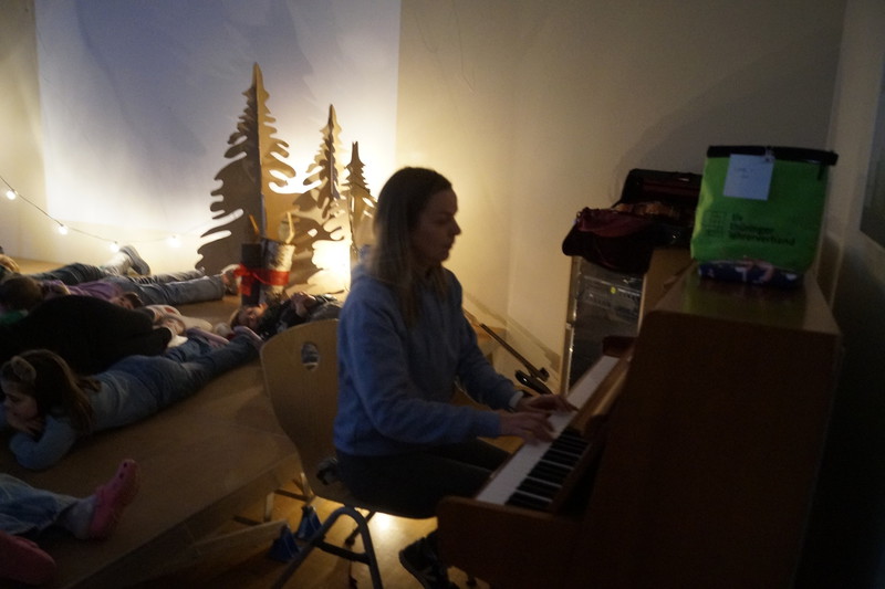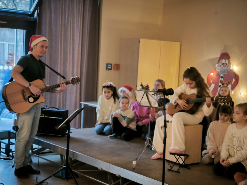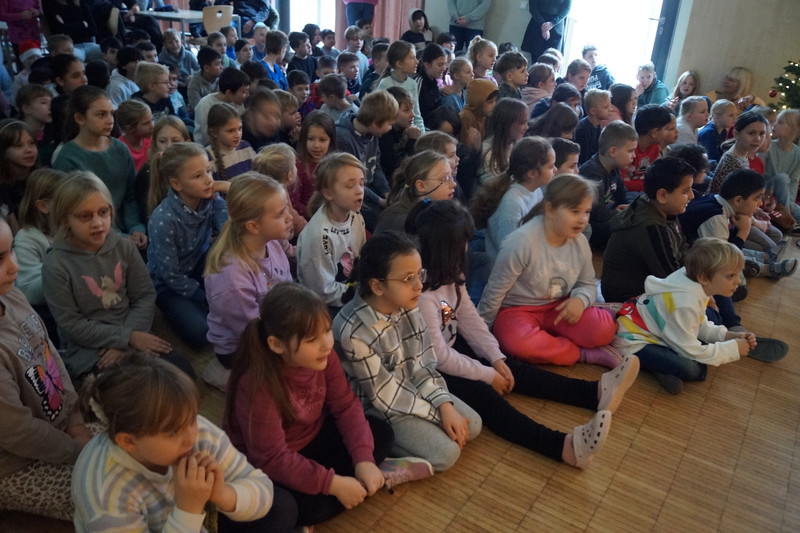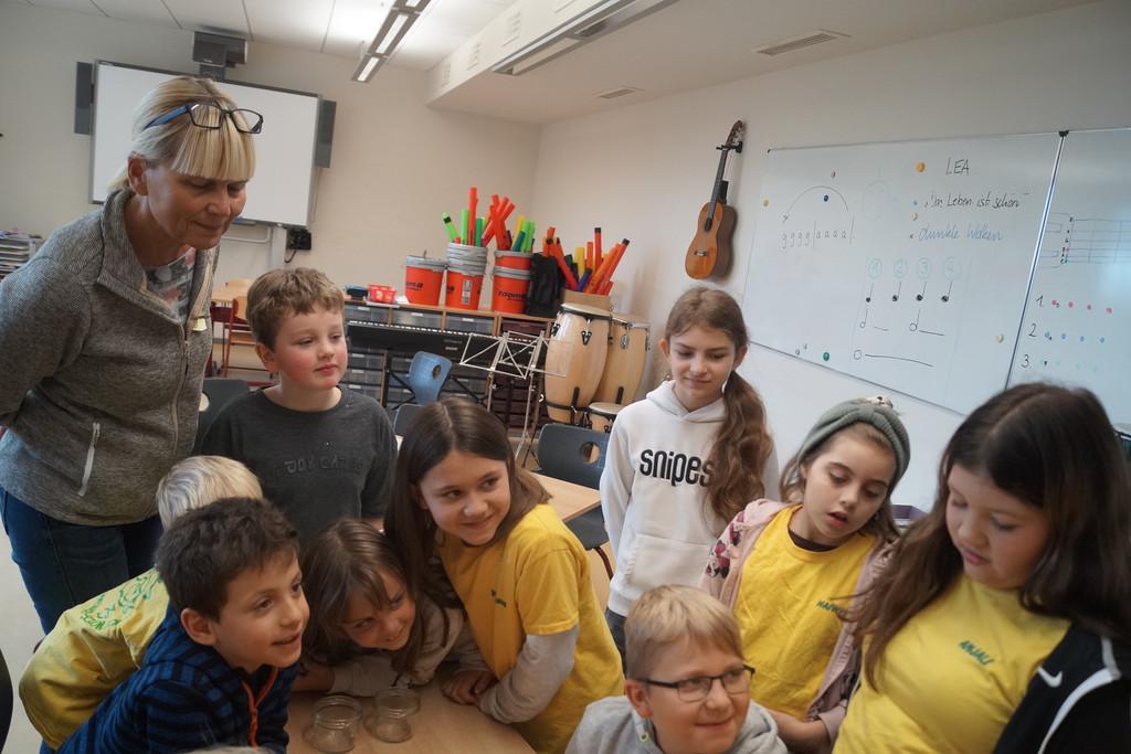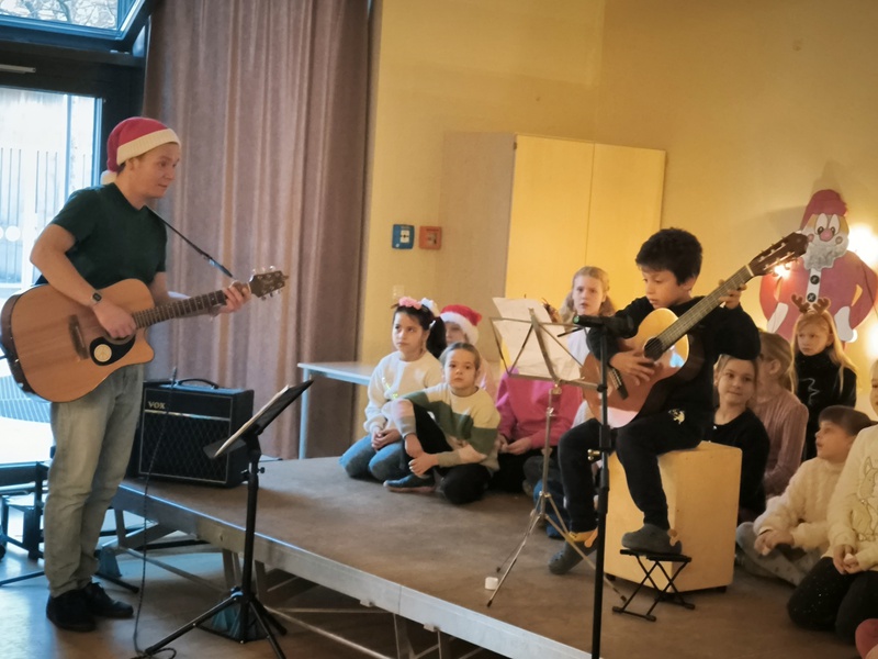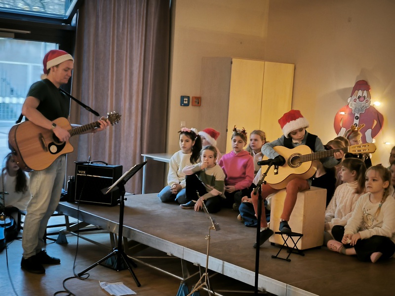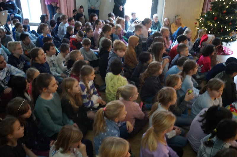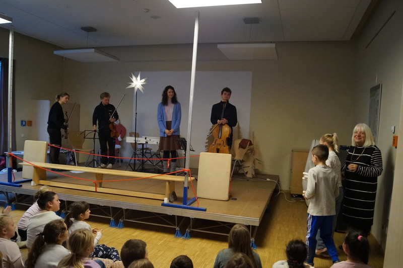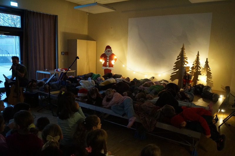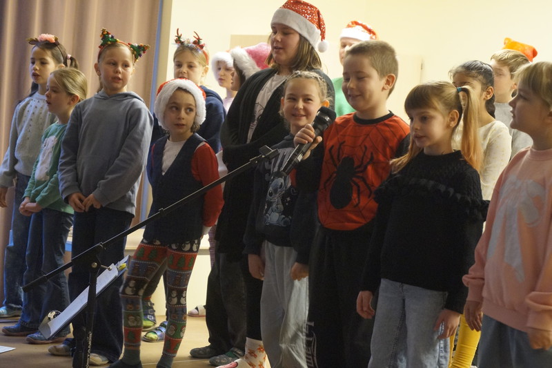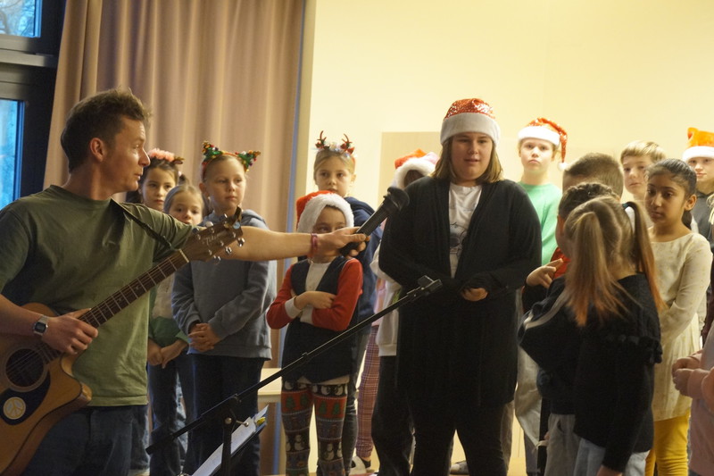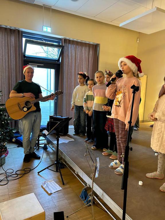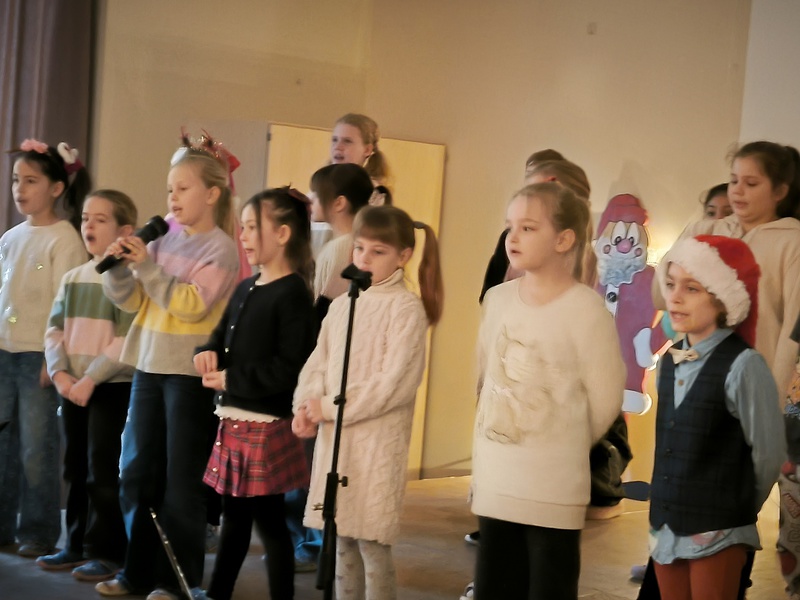 2.10.2025: Gemeinsames Singen vor den Herbstferien....und ganz mutige KInder spielten Gitarre, trugen ein Gedicht vor und zeigten einen Zaubertrick