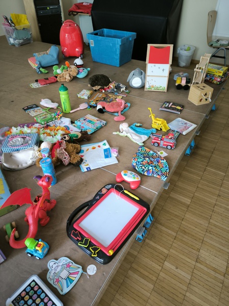 Nicht verkaufte Spielsachen übergeben wir an die Caritas.