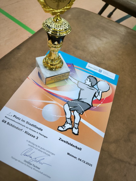 5.12.2025: Zweifelderball-Turnier der Weimarer Grundschulen...Platz 1 für den 3. Jahrgang und Platz 1 - und somit qualifiziert fürs Landesfinale - für den 4. Jahrgang - WOW! Glückwunsch!