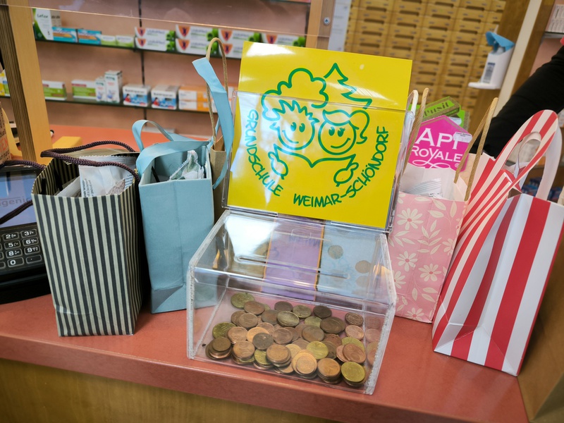 06.02.2026: Unsere Schülersprecher durften heute für den Schulförderverein der Schule in der Schöndorfer Apotheke eine großzügige Spende über 400,00€ entgegennehmen. Anlass war eine vom Inhaber Herrn Fink veranlasste Sammelaktion. Das Geld wird für zukünftige Projekte (Schulfest, Forschertag, ...) verwendet werden.
